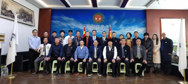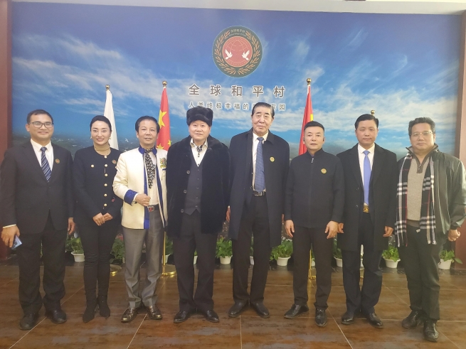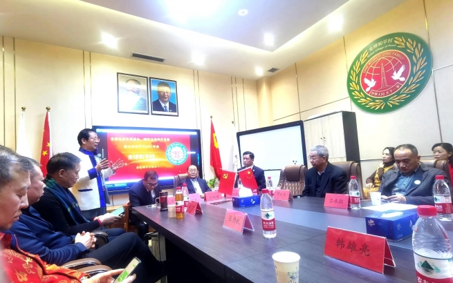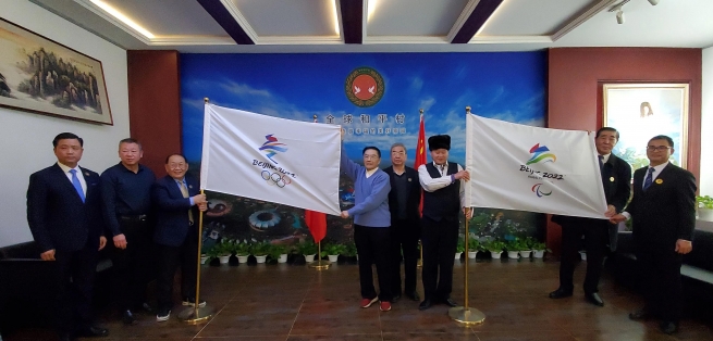 全球和平村董事局主席張學(xué)博、中宣部辦公廳主任薛啟亮、聯(lián)合國(guó)代表張文祥、安學(xué)君舉行迎冬奧儀式